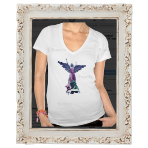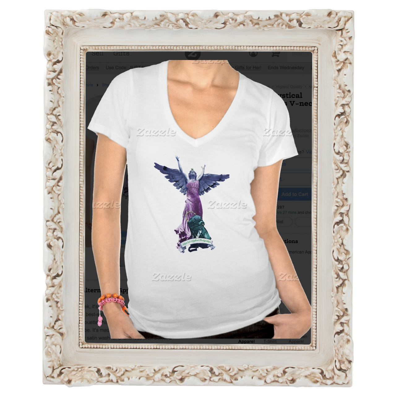 The Angel of Mystical Backpackers: created to watch over mystical backpackers as they journey. She is available on several styles of clothing (including the tee shown at left) and products (bags, water bottles, travel mugs, luggage tags, bumper stickers, & more!) Shop products & styles either at The Mystical Backpacker Zazzle Shoppe or at The Mystical Backpacker CafePress Shoppe. Pictured tee sold on Zazzle.