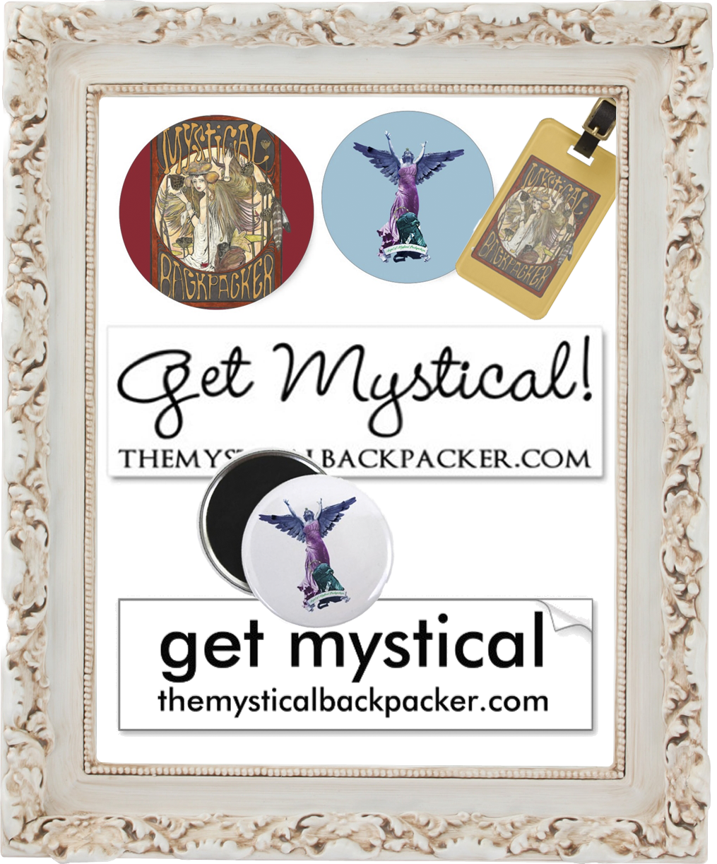 We got your bumper stickers, your magnets, your luggage tags…we got your bits, your bobs, your little bits o’ light up yer world inspiration! Shop these treats at The Mystical Backpacker Zazzle Shoppe or at The Mystical Backpacker CafePress Shoppe.