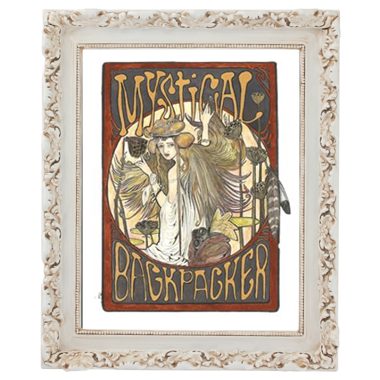 The Mystic of Mystical Backpackers: created to inspire mystical backpackers as they journey. She is available on several styles of clothing, stationary (including the poster shown at left), and products (cell phone cases & mini-speakers, drink containers & more!) Shop products & styles either at The Mystical Backpacker Zazzle Shoppe or at The Mystical Backpacker CafePress Shoppe. Poster sold on CafePress.