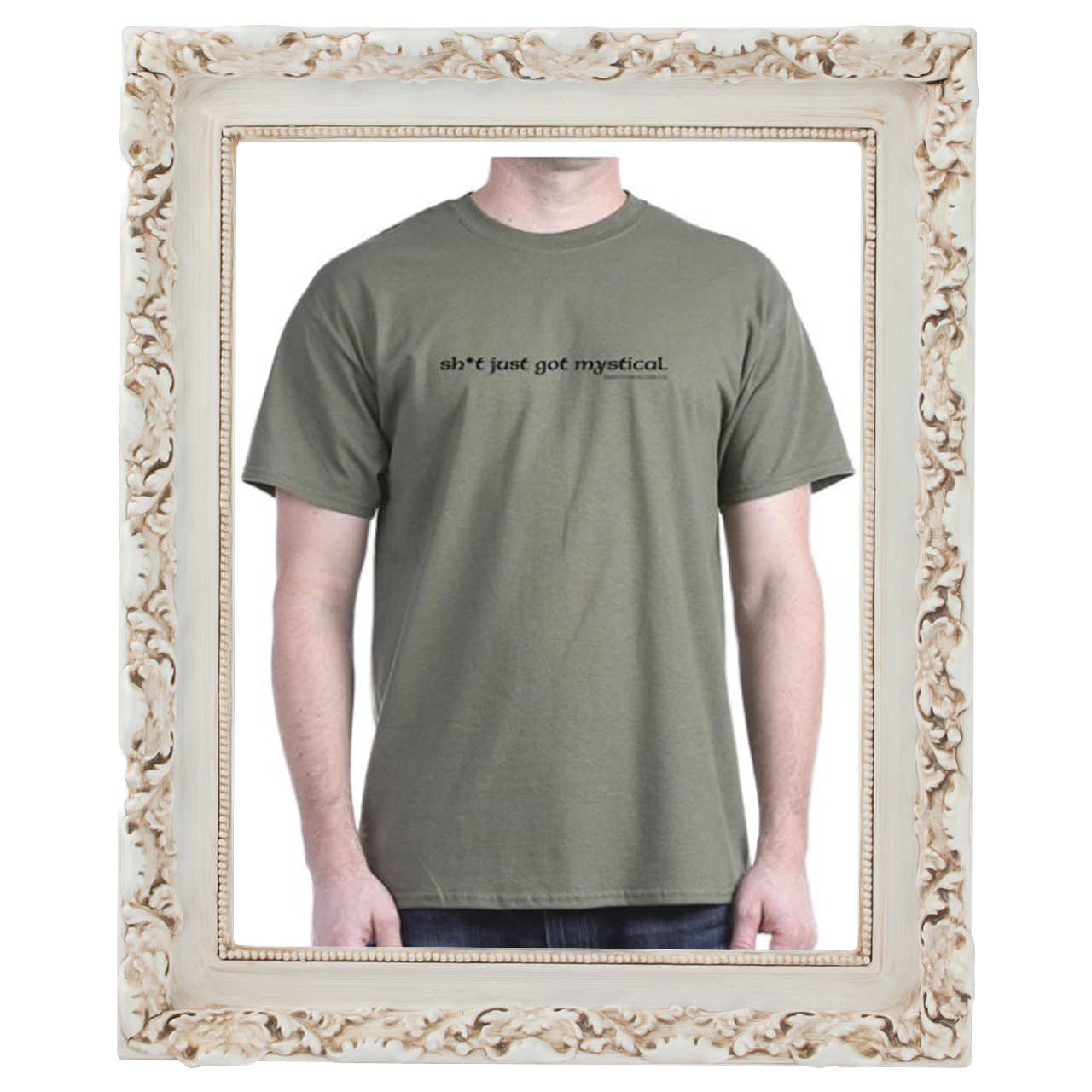 When you go with the flow, you will marvel at how sh*t gets mystical on its own – with little effort or forcing from you! This lighthearted sentiment is available on several styles of clothing & products (hats, reusable grocery bags, beach tops, & more) Shop this style only at The Mystical Backpacker CafePress Shoppe.